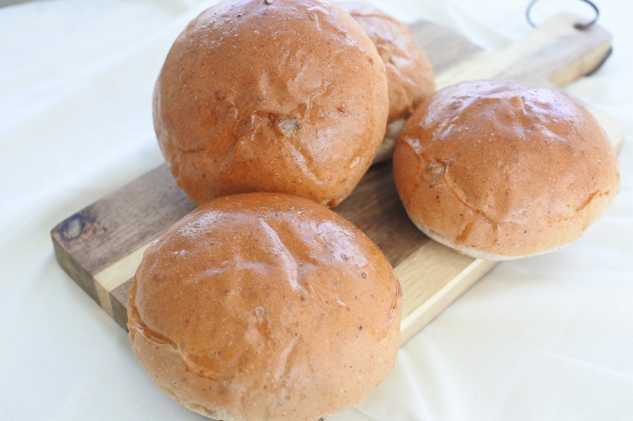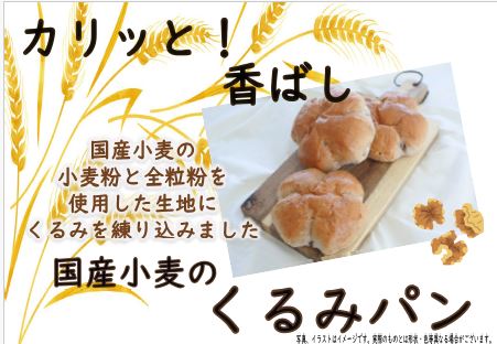 国産小麦の小麦粉と国産小麦の全粒粉を使用した生地に、くるみを練りこんだ製品です。