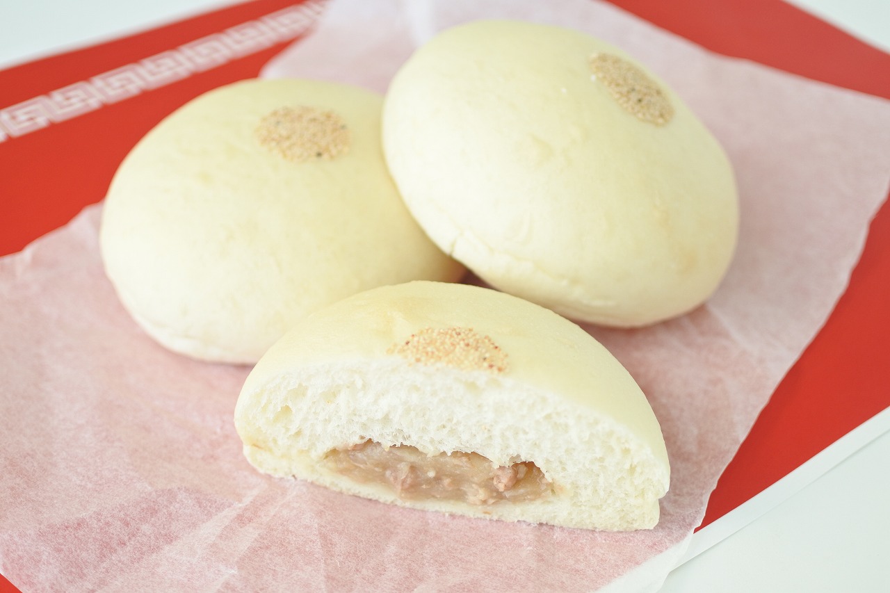 もっちりとした湯種入りの生地で、豚まんの具を包んだ製品です。