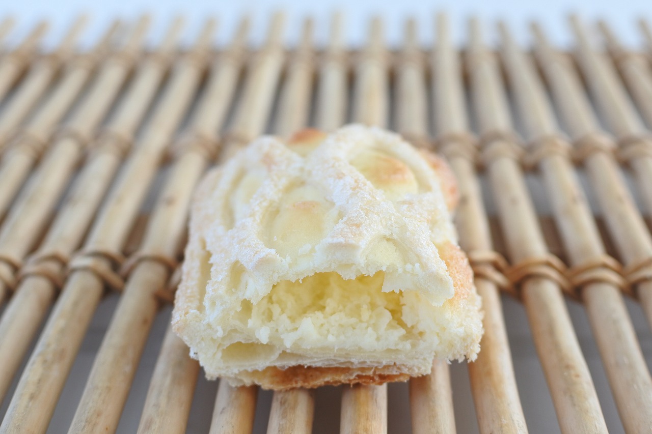 クリームチーズ入りのチーズクリームをパイ生地で包んだ商品です。(製品中のチーズのうち66%がクリームチーズです。)