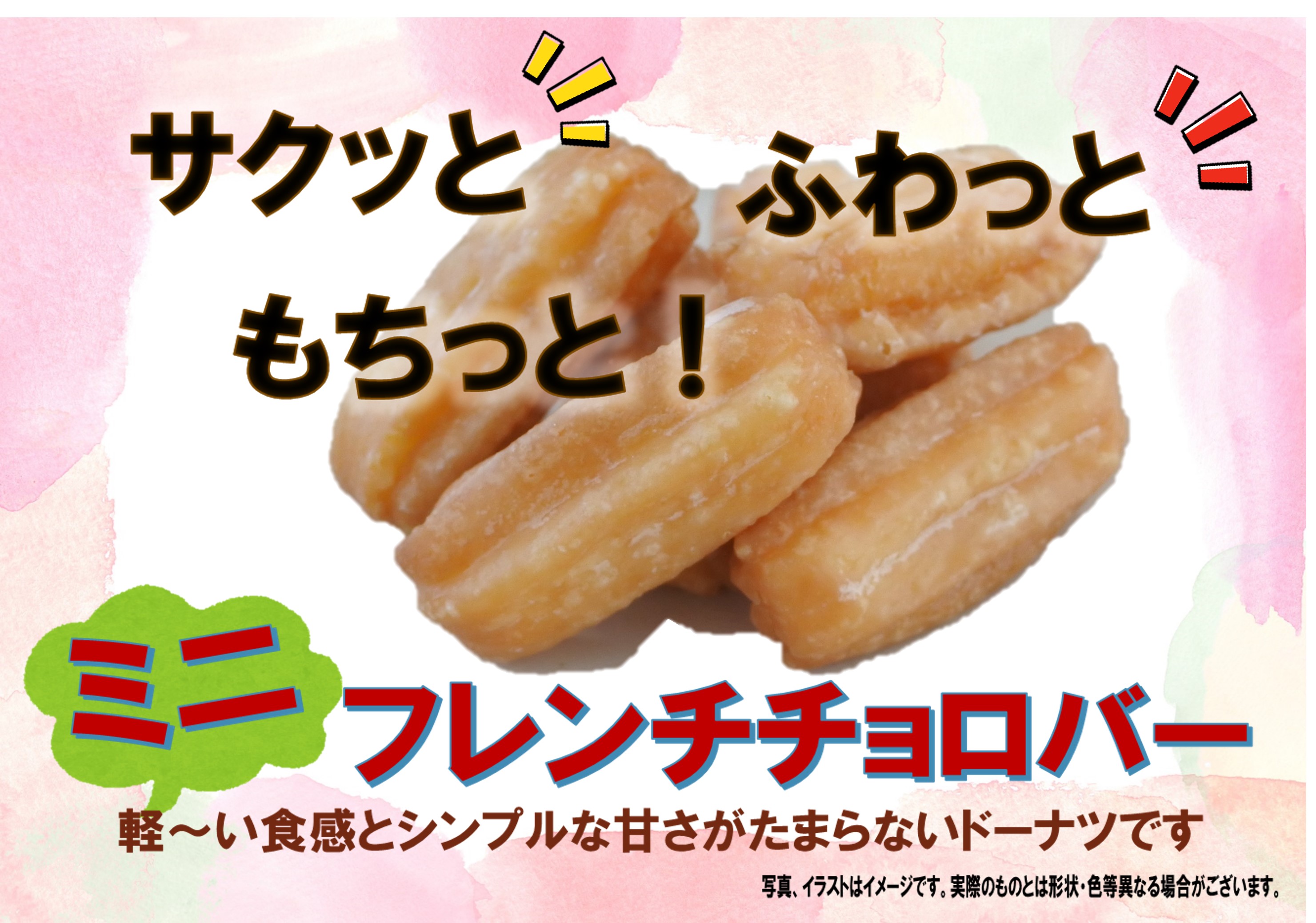 サクもちふわっとしたフレンチクルーラー食感のミニチョロバーです。