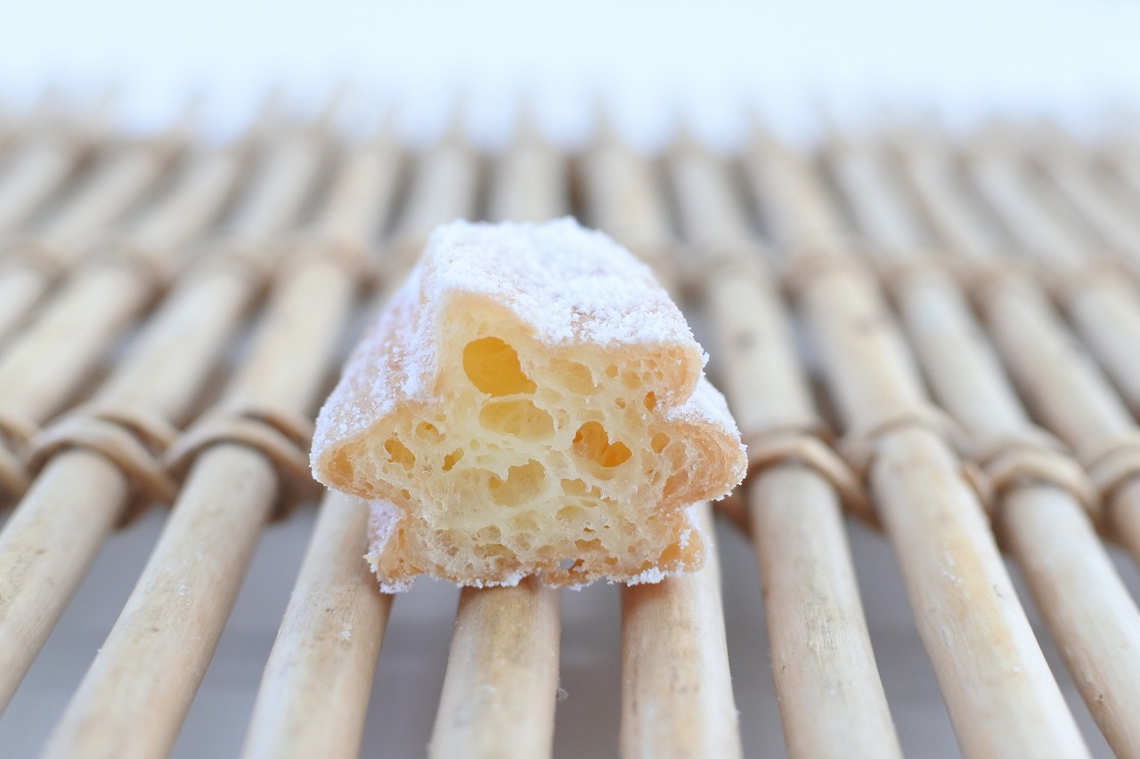 | 原材料名 | 液卵(国内製造)、でんぷん、米粉、ショートニング、植物油脂、砂糖、食塩、乳等を主要原料とする食品/トレハロース、酢酸(Na)、ゲル化剤(加工デンプン)、膨脹剤、乳化剤、増粘剤(アルギン酸エステル、増粘多糖類)、ショ糖エステル、リゾチーム、グリシン、酵素、ビタミンC、(一部に卵・小麦・乳成分・大豆を含む) |