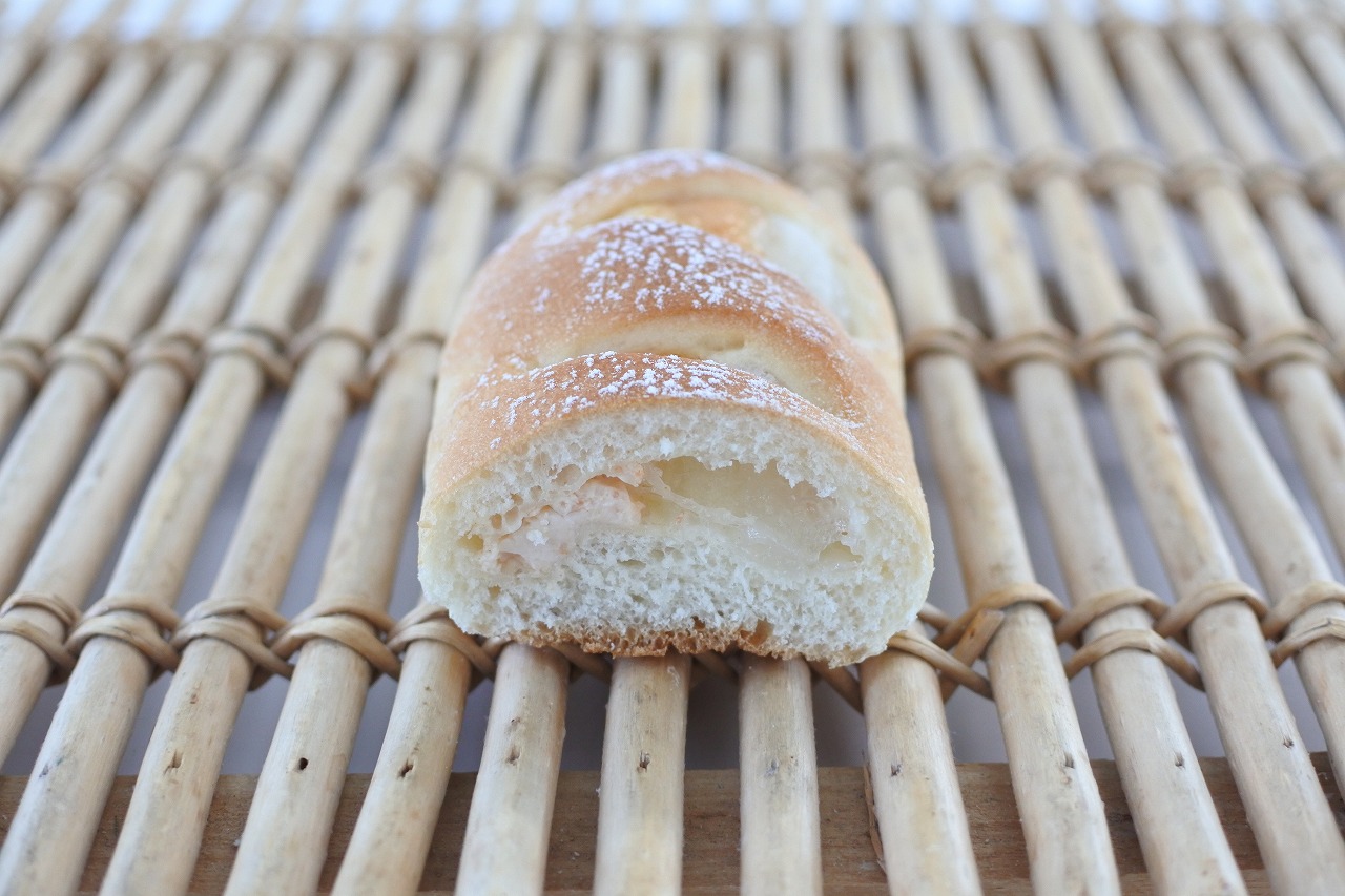 ひきのある生地に明太子入りのマヨソースともち生地を包んだ商品です。