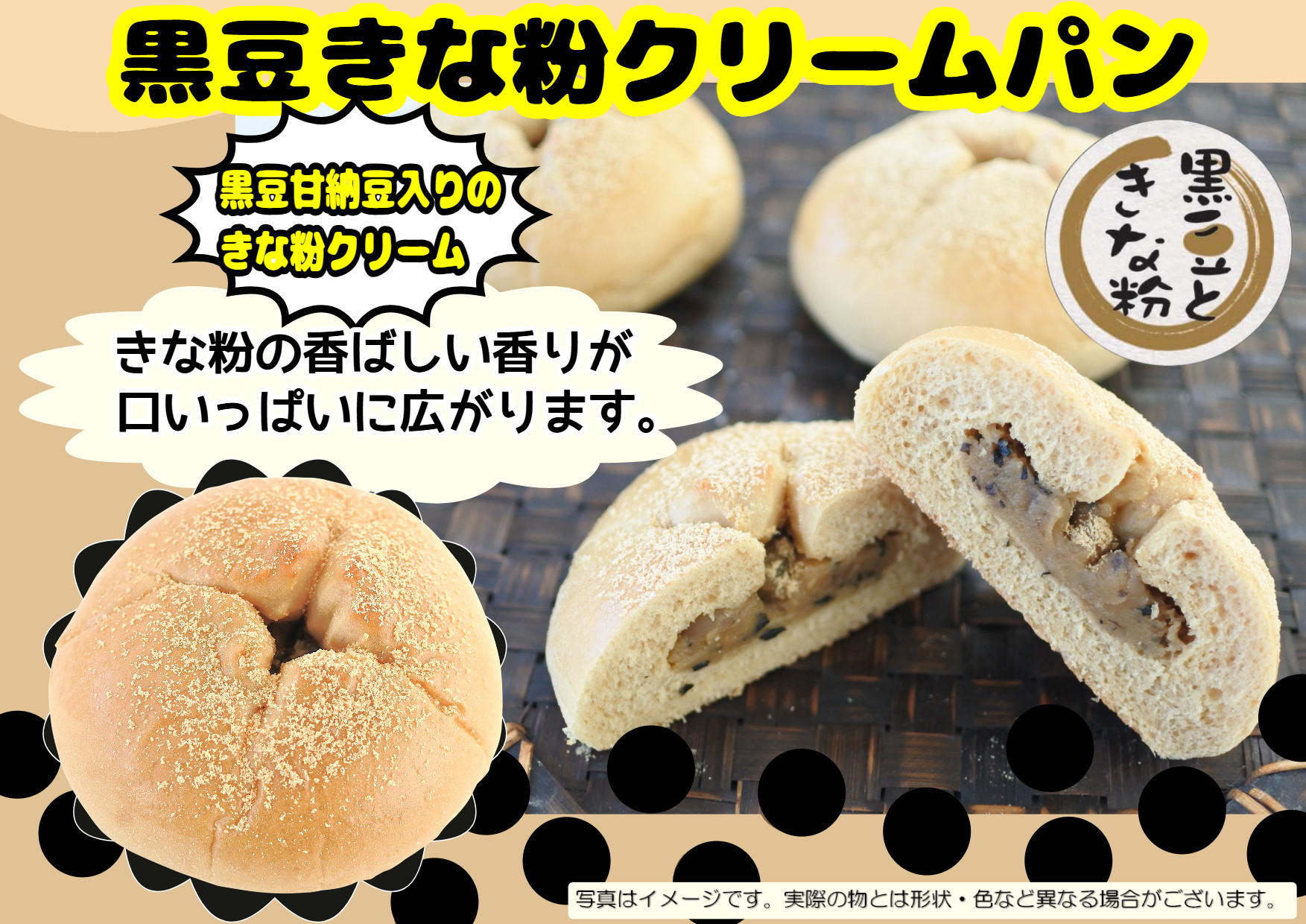 【サンプル】黒豆きな粉クリームパン