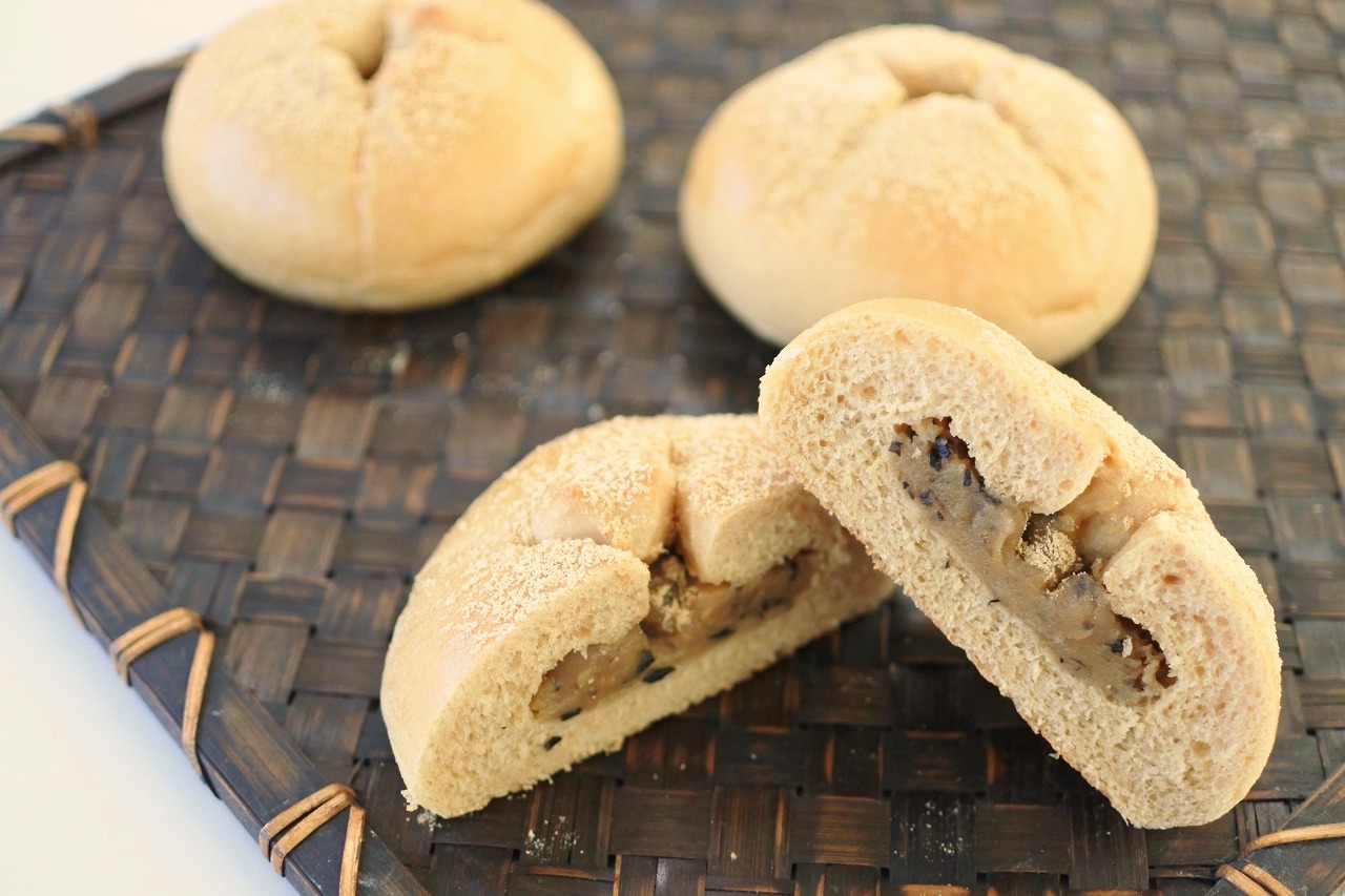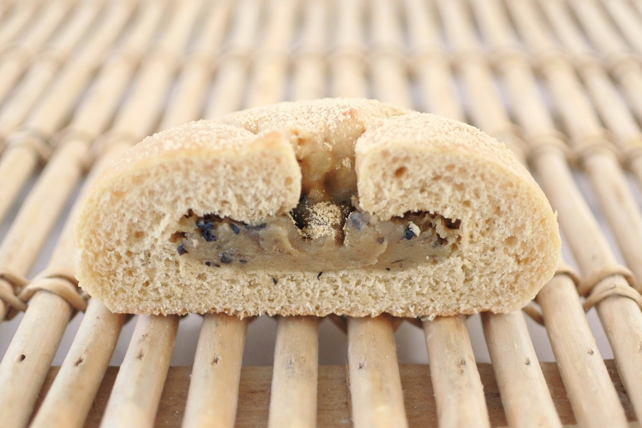 茶色い菓子パン生地に黒豆甘納豆入りのきな粉クリームを包んだ商品です。