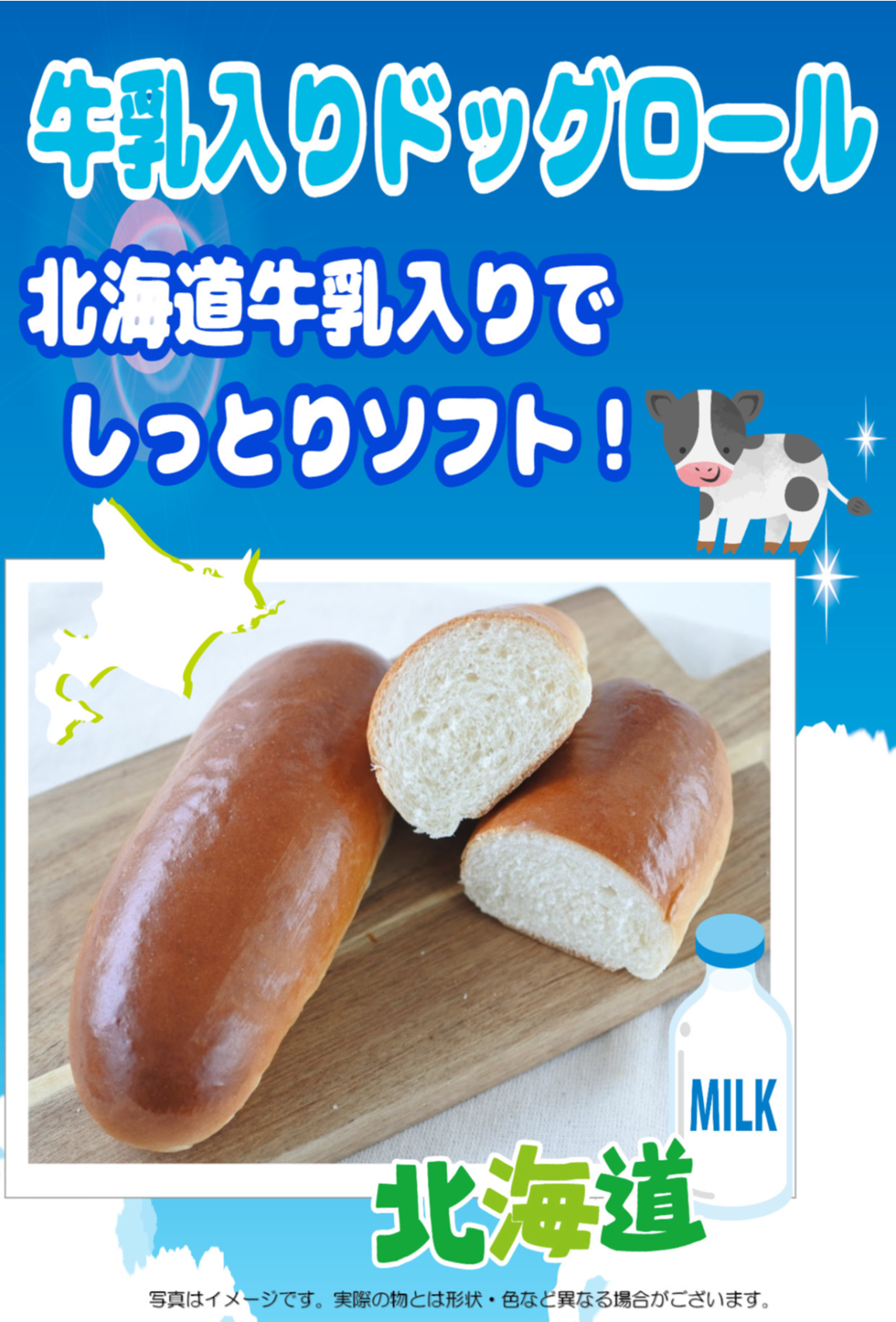 北海道牛乳を使用したしっとり食感でほのかな甘味のロールパンです。